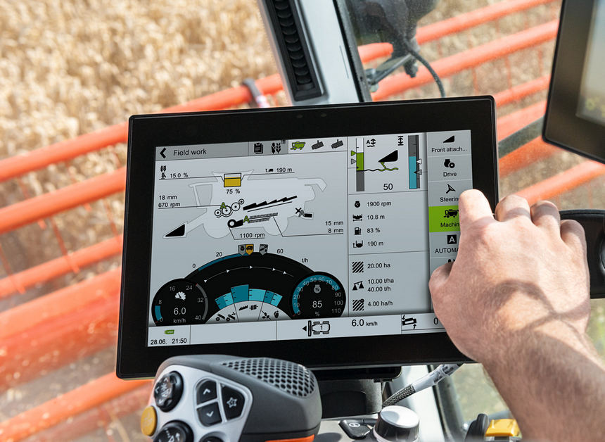Одним из главных преимуществ CEMOS AUTOMATIC является ее способность согласованно управлять всеми узлами комбайна. Модуль AUTO THRESHING регулирует зазор подбарабанья, частоту вращения барабана и положение заслонок, обеспечивая оптимальный обмолот даже в сложных условиях. AUTO SEPARATION контролирует сепарацию зерна, минимизируя потери, а AUTO CLEANING автоматически настраивает решета и вентилятор для достижения идеальной чистоты зерна в бункере. Особого внимания заслуживает модуль AUTO HEADER, который в сочетании с лазерным сканером FIELD SCANNER точно управляет жаткой, адаптируя ее работу к изменяющемуся рельефу и высоте стеблестоя.