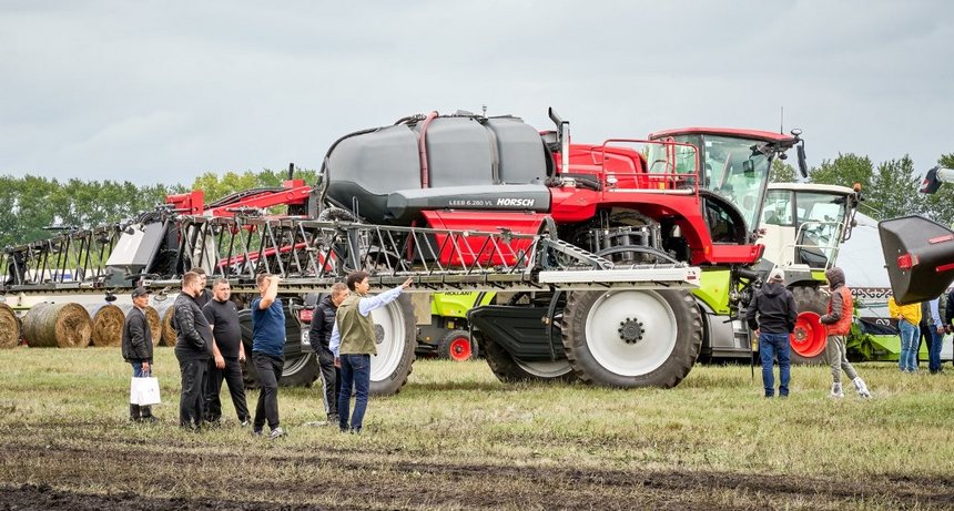В центре внимания полеводов практически на каждом из мероприятий оказывался самоходный опрыскиватель HORSCH LEEB 6.280 VL с емкостью бака 6000 л, но главное — с возможностью изменения клиренса до 2 м и ширины колеи до 4 м. Казахстанские аграрии в последние годы нацелились на диверсификацию производимой продукции и все чаще в свои севообороты включают кукурузу на зерно, подсолнечник и рапс. Для эффективной реализации мероприятий по защите высокорослых культур самоходный опрыскиватель с изменяемым клиренсом — важная составляющая машинно-тракторного парка современного хозяйства.