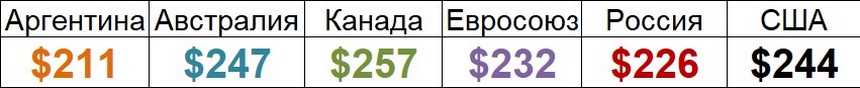 Диаграмма 1. Динамика экспортных цен на пшеницу в разных странах за последние 12 месяцев, $/тонна