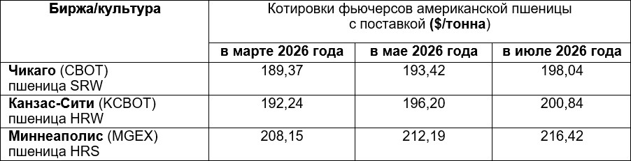 Таблица 2. Котировки американской пшеницы по состоянию на 14 января 2026 года