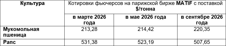 Таблица 3. Котировки европейской пшеницы по состоянию на 14 января 2026 года