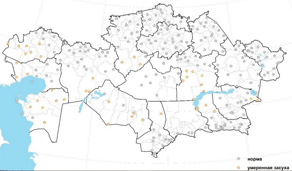 В Алматинской области согласно расчётам СИО умеренная засуха ожидается в Балхашском районе, около нормы на остальных наблюдательных пунктах.