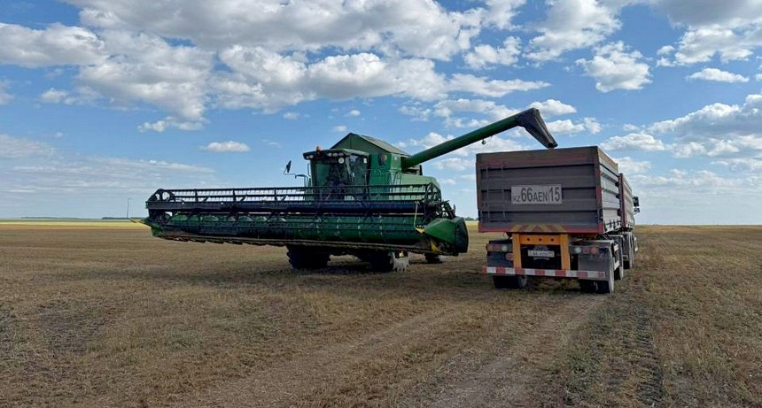 Одним из ключевых объектов стал ТОО «Акселеу». В 2025 году посевная площадь предприятия превысила 15 тысяч га, из которых зерновые культуры занимают 12 726 га, масличные — 4 263 га, бобовые — 2 627 га, кормовые — 1 334 га. Хозяйство активно занимается диверсификацией производства: доля зерновых составляет 46%, бобовых — 17%, масличных — 28%, кормовых — 9%.